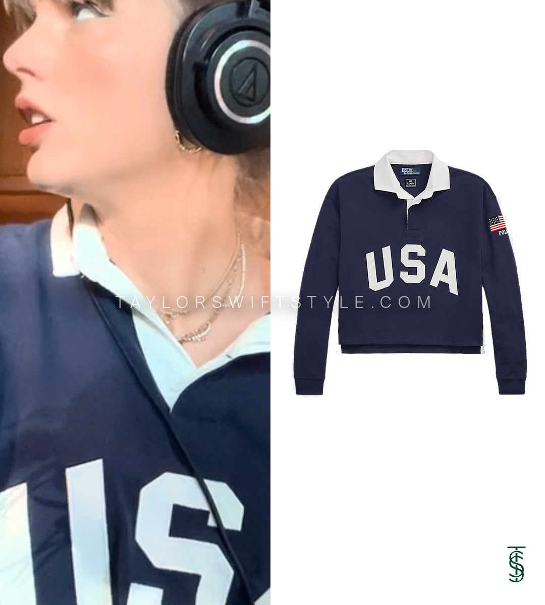 I had noted in my Part II recap for The End of an Era on the Liner Notes newsletter if Episode 4’s title was indicative that we might see more clips of the recording process of The Life of a Showgirl - one of two albums recorded while Taylor was on this momentous tour. And oh did we get it in Episode 5! Elsewhere in these clips, Taylor wears a sweater from the same Ralph Lauren Team USA collection, developed in tandem with the 2024 Summer Olympics.
